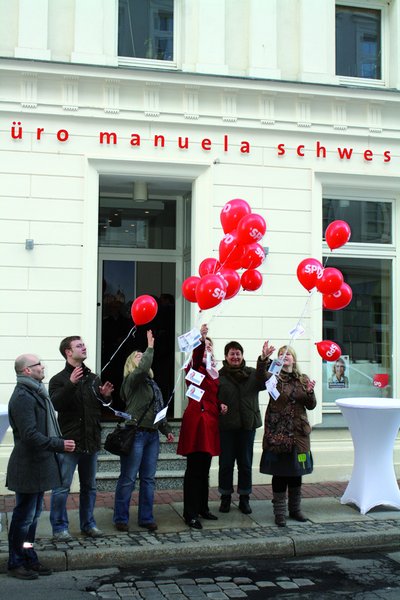 Bei strahlendem Sonnenschein öffnete am 2. April 2011 das Bürgerbüro von Manuela Schwesig, Landtagskandidatin der SPD für Schwerin, seine Türen. Über 100 Bürger feierten mit der Ministerin die Eröffnung, darunter Vertreter aus Vereinen, Verbänden, Gewerkschaften, Wirtschaft, Kirche und Politik.