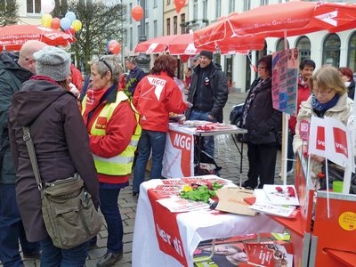 Nach dem Erfolg des gesetzlichen Mindestlohns wird sich der DGB verstärkt um die Abwendung von Altersarmut kümmern, die hauptsächlich durch Niedriglohn verursacht wird. Als Redner eingeladen ist der stellvertretende Vorsitzende des DGB Nord Ingo Schlüter. Die Podiumsdiskussion mit Vertretern der demokratischen Parteien gilt als Auftaktveranstaltung der Initiativen des DGB zu den Landtagswahlen. Organisationen und Parteien informieren auch an ihren Ständen und laden zu Gesprächen ein.