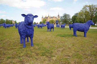 Ungewöhnliche tierische Besucher zogen Anfang Mai die Blicke auf sich: Eine blaue Schafherde weidete zwei Tage lang auf der Schwimmenden Wiese im Burgsee. Lebendig waren die Vierbeiner jedoch nicht, sie stammen aus dem Atelier des Künstlerpaares Bertamaria Reetz und Rainer Bonk aus Köln und Rheinberg. Ihre Aktion ist nicht nur ein besonders originelles Fotomotiv, sie soll auch Denkanstöße liefern. Die Gleichheit der Figuren transportiert eine zentrale Botschaft der Kunstaktion: Alle sind gleich. Jeder ist wichtig. „Unsere Blauschafe werben für ein friedliches Miteinander, für Toleranz und ein Wir-Gefühl, das auf der Wertschätzung des Anderen basiert“, so Rainer Bonk. Ein blaues Schaf wurde der Stadt Schwerin als Geschenk übergeben.
