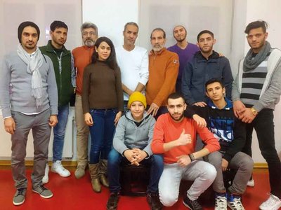 Die „Theatergruppe der Hoffnung“ besteht aus Flüchtlingen, einer jungen Frau sowie Männern und Jungen im Alter von 12 bis 50 Jahren. Sie haben sich in Schwerin bei ihren Deutschkursen kennen gelernt.