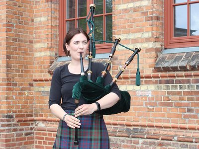Da war Anna Kummerlöw elf. Sie lernte ruckzuck und eifrig. Schnell war der Zeitpunkt gekommen, an dem ihr Vater sie musikalisch nicht mehr voranbringen konnte. So fuhren beide zusammen nach Glasgow, wo sie eine Woche lang am National Piping Center Unterricht nahm. Schottland darf sie mittlerweile wohl als ihre dritte Heimat bezeichnen. Ihre erste ist Hamburg.