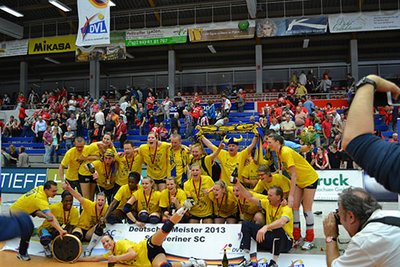 Per Auswärtssieg zum Meistertitel: Im vierten Spiel der Play-offs um die Deutsche Meisterschaft hat der Titelverteidiger Schweriner SC seinen Gastgeber Dresden in einem dramatischen Endspiel mit 3:1 Sätzen niedergerungen. Dadurch entschied der SSC auch die gesamte Finalserie mit 3:1 für sich. Die Schwerinerinnen machten so ihren Titel-Hattrick perfekt und errangen insgesamt den zehnten Meistertitel nach der Wende – Rekord!