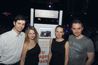 Dass man auch den 15. Geburtstag auf einer Ü30-Party feiern kann, bewiesen die Gäste der Schweriner Werbe- und Eventagentur büro v.i.p. Kunden, Mitarbeiter und Weggefährten stießen auf den 15. Jahrestag des Unternehmens an und genossen in der Geburtstagslounge neben der Bühne einen besonderen Abend mit Party-Anschluss.