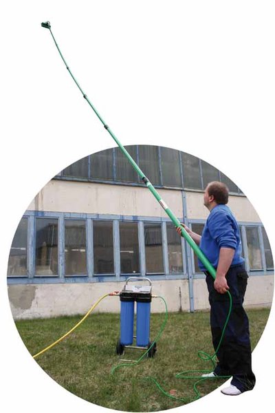 Die Lösung ist eine fachmännische Säuberung mit einer sogenannten Reinwasseranlage. „Dafür wird normales Leitungswasser in das Gerät gepumpt, mehrfach gefiltert und entmineralisiert, also von jeglichen Verunreinigungen befreit“, erklärt der Firmenchef. Das in diesem Prozess gewonnene „Reinstwasser“ (Osmosewasser) saugt den Schmutz förmlich auf. Fensterfassaden, Fotovoltaikanlagen und weitere glatte Oberflächen sind nach der Intensivreinigung allgemein weniger für Schmutz anfällig, da sämtliche Partikel entfernt werden. Zudem kommt das Wasser wegen seiner speziellen Eigenschaften komplett ohne Reinigungsuzsätze jeglicher Art aus. Ein positiver Nebeneffekt gerade bei der Reinigung von sehr empfindlichen Flächen. Und die Profis vom HDS wissen: „Nur eine saubere Solaranlage arbeitet effektiv und bewirkt auch auf längere Sicht eine optimale Stromeinspeisung.“