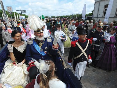 Im Schloss hält Friedrich Franz II. einen Tag lang Hof und lässt seine Besucher daran teilhaben. Sie dürfen im Saal sitzen, während er Audienzen gewährt, und wohnen gemeinsam mit ihm der Vorführung höfischer Tänze bei. Doch was wäre ein Landesfürst ohne Gefolge und Untertanen? 200 Mitglieder des Vereins der Freunde des Schweriner Schlosses und anderen historischen Vereinen schlüpfen in Kostüme von anno dazumal und zeigen Besuchern, wie es sich im 19. Jahrhundert so lebte. Sie flanieren durch den barocken Schlossgarten, treten beim Fechten im Burghof gegeneinander an und lassen sich über die Schulter schauen, wenn sie die Damen im Wilhelmszimmer ankleiden.