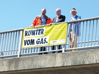 Runter vom Gas“ aufgehängt. Das erste, an der Brücke über der Neumühler Straße wurde vom Verkehrsminister unseres Landes, Christian Pegel, entrollt.