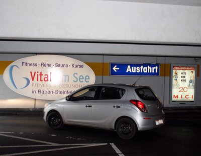 Bei der ovalen Werbefläche an der Ausfahrt vom Parkdeck 2 (mittlere Ebene) ist das genau so. Diese ist etwa zwei mal vier Meter groß, und die dort präsentierten Angebote lassen sich relativ problemlos immer wieder aktualisieren. Monatlich nur 300 Euro kostet es, diese besondere Werbefläche anzumieten.