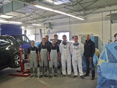 In den modernen Lackierkabinen werden heute nur hochwertige Lacke der Firma „Sikkens – Akzo Nobel“ auf Wasserbasis verwendet. Digitale Farbmessgeräte und computergestützte Farbmischanlagen garantieren hundertprozentige Farbgenauigkeit. So wird am Kundenfahrzeug mit dem Spektralphotometer der genaue Farbcode ermittelt, um in der Lackmischanlage exakt diesen Ton zu erzeugen. Anspruch und Maßstab ist die Qualität des brillanten Lacks fabrikneuer Fahrzeuge. Die Lackier- und Trocknungsanlagen entsprechen den modernsten Umweltstandards hinsichtlich Emissionen und Arbeitsschutz.