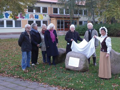 Freude in Lankow: Die Sagensteine im Generationenpark Lankow haben wieder eine Tafel, auf der die Sage von den drei Hirtenknaben erzählt wird, die hier einst in Steine verwandelt worden sein sollen. Die ursprüngliche Tafel, die vor vier Jahren angebracht wurde, war im Frühjahr zerbrochen, vielleicht in Folge von Materialspannung.