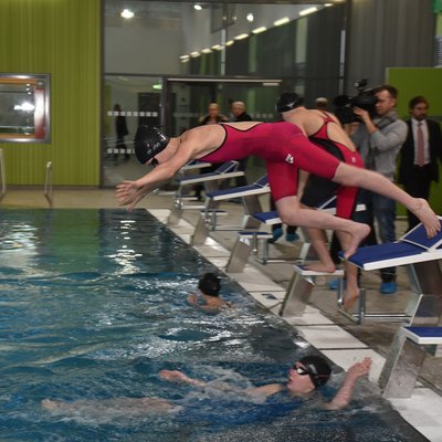 Jetzt ist sie eröffnet die neu gebaute Schwimmhalle auf dem Großen Dreesch. nach dem offiziellen Teil zeigten am ersten Tag, dem 29. Januar, Viertklässler einige Schwimmvorführungen, bevor die Halle dann auch für die Bevölkerung ihre Türen öffnete.