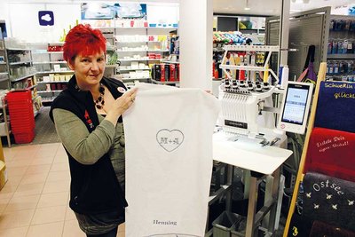 Sollen es die kleinen Möwen sein? Oder lieber die Blümchen? Oder doch der Klassiker, die eigenen Initialen? Wer sich im Kaufhaus Stolz bei Sabine Kreuziger an der Stickmaschine einfindet, der hat die Qual der Wahl. Unzählige kleine und größere Varianten der unterschiedlichsten Motive, Bilder oder Buchstaben sind in dem kleinen Büchlein versammelt, das die Verkäuferin in der Textilabteilung bereithält. „Der Dauerbrenner sind nach wie vor Namen oder Initialen auf dem Handtuch, und für Kinder ist zur Zeit ein kleines Seepferdchen sehr beliebt“, erzählt Kreuziger. „Prinzipiell können wir alle textilen Artikel besticken, die bei uns erhältlich sind und die in einen der Stickrahmen eingespannt werden können.“ Die Bandbreite reicht dabei von einer kleinen Verzierung für 3 Euro über die mittlere für 4 Euro bis hin zum großen Exemplar für 5 Euro. Artikel, die in einem anderen Geschäft gekauft wurden, sind davon aber ausgeschlossen, einzige Ausnahme: Es gibt sie nicht bei Stolz. Nach einer Viertelstunde ist nahezu jedes Motiv in den Stoff gestickt; auch mehrere nebeneinander sind möglich, um einen noch größeren Effekt zu erzielen. „Je nach Andrang ergeben sich dafür manchmal kleine Wartezeiten“, ergänzt die Verkäuferin, die als gelernte Täschnerin von je her ein Händchen für Nähmaschinen hat. „Das lässt sich aber prima mit einem Bummel durch das Kaufhaus überbrücken.“ Wer dann aus den angebotenen Farben und Formen das Passende gefunden hat, kann sich über ein echtes Unikat freuen. Möglich gemacht hat das Kaufhaus auch schon größere individualisierte Bestellungen, zum Beispiel T-Shirts für eine Vereinsmannschaft oder auch Handtuch-Präsente mit einem Werbeslogan im Auftrag der Stadt Schwerin – der Fantasie sind keine Grenzen gesetzt.