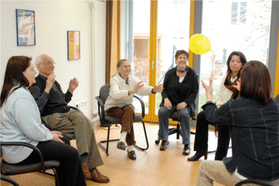 Es ist förderlich, wenn ein Demenzkranker solange wie möglich in der vertrauten Umgebung leben kann. Dazu sollte die individuelle Förderung durch Ergotherapie, Physiotherapie oder Logotherapie - immer abhängig von der Form der Demenzerkrankung - hinzukommen. Auch Anregungen durch Betreuungsgruppen oder Tagespflegen sind wünschenswert. So können vorhandene Ressourcen erhalten bleiben, die in der Häuslichkeit kaum angesprochen werden (Koordination, Bewegung, Anregung durch Gruppenaktionen wie Spiele, Singen; Kegeln etc.).