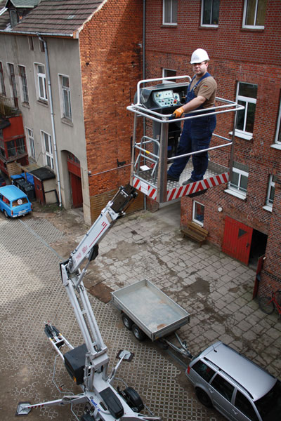 Der ABS-Hebebühnenverleih bietet die ideale Lösung. Mit der Hebebühne „DINO 160“ können diese Aufgaben problemlos gemeistert werden. Durch die maximale Arbeitshöhe von 16 Metern können die Mitarbeiter von ABS mühelos Fallrohre, Baumkronen, Dachrinnen und Giebel erreichen. Außerdem ist die selbstfahrende Hebebühne praktischerweise nicht nur höhenverstellbar, sondern dazu auch in der Lage, versetzt in verschiedenen Winkeln zu arbeiten. Transportiert werden kann das Gerät einfach mit einem Pkw, der über eine Hängezugvorrichtung verfügt.