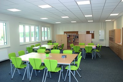 Alle Beteiligten haben gemeinsam eine Einrichtung geschaffen, an der die sich Mädchen und Jungen wohlfühlen können. Teschner sagt: „Durch die sorgfältige Auswahl von Möbeln, Farben sowie Lern- und Lehrmitteln ist hier ein Ort in lernfördernder Atmosphäre entstanden.“ Alle Fachräume sind farblich unterschiedlich gestaltet, während in den Klassenräumen jeweils die gleichen Farben verwendet wurden. Highlight in den Fachräumen sind die interaktiven Displays, die eine moderne Unterrichtsgestaltung ermöglichen. Aber klassische Kreidetafeln werden auch verwendet.