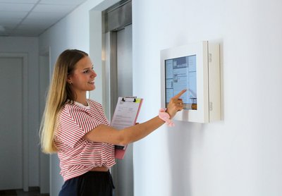 Alles Wichtige auf einen Blick und in Sekundenschnelle – mit den neuen digitalen Haustafeln sind Mieter bei der SWG bestens informiert. Die Genossenschaft hat 50 dieser smarten Bildschirme angeschafft und ersetzt damit in vielen Hausfluren Korkbretter und Pins. Die Bildschirme können nämlich eine Menge mehr. „Fällt zum Beispiel mal der Fahrstuhl aus, können wir in kürzester Zeit darüber informieren“, sagt Vorstandsmitglied Manuela Friedrich. Auf den Tafeln kann mitgeteilt werden, wann der Schornsteinfeger kommt, welche Veranstaltungen angeboten werden und vieles mehr.