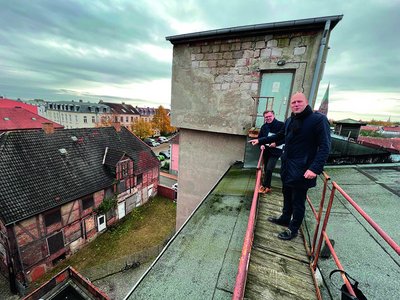 Vorteil: Da der Gebäudeteil leersteht, könnte mit der Sanierung zeitnah begonnen werden. Geld für die Herrichtung des Zentraldepots ist im Haushalt 2023/2024 bereits veranschlagt. Gleichzeitig würde mit der Sanierung ein wenig ansprechender Anblick am historischen Schelfmarkt verschwinden. Wenn alles klappt, könnte das neue Zentralarchiv schon 2028 einzugsbereit sein – und Akten, Pläne und Karten könnten auf ausreichend großer Fläche untergebracht werden. Auf bis zu fünf Kilometer summiert sich die Länge des aufzubewahrenden Papierguts.