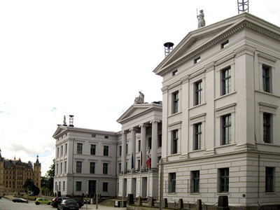 Wer kennt das nicht: Da steht ein schönes Haus in der Straße, hundertmal und mehr ist man schon vorbeigegangen. Aber was verbirgt sich hinter der Fassade? Welche Geschichten stecken hinter den Mauern, wer geht hier ein und aus? Denn schließlich sind Geschichten von Häusern immer auch Geschichten von Menschen. In dieser Serie wollen wir gemeinsam mit Ihnen hinter Fassaden blicken. Heute in der Schloßstraße 2-4, wo die Staatskanzlei klassisch-griechische Erhabenheit nach Schwerin bringt.