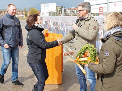 In den Waisengärten in Schwerin feierten zukünftige Bewohner, Baufirmen und Oberbürgermeisterin Angelika Gramkow kürzlich Richtfest für die 41 Eigentumswohnungen in der Amtstraße 30. Zimmerermeister Christoph Sieg von der Hanebutt Peene-Nord GmbH hielt den Richtspruch. Bauherr Jan-Friedrich Schütt, geschäftsführender Gesellschafter der Friedrich Schütt + Sohn Baugesellschaft aus Lübeck, begrüßte die Gäste des Richtfestes und freute sich über das große Interesse an dem Bauprojekt.Wenige Schritte vom Schweriner See entfernt liegt das Bauvorhaben „Am Alten Obstgarten“. Auf dem 2.700 Quadratmeter großen Grundstück standen in der Vergangenheit alte Obstbäume, die dem Projekt den Namen gaben. In den neuen Außenanlagen wird die ursprüngliche Nutzung wieder aufgegriffen: Neue Obstbäume werden nach der Fertigstellung, voraussichtlich Ende dieses Jahres, gepflanzt.Die Baugesellschaft hatte gemeinsam mit den Schweriner GPK Architekten im Mai 2011 die Planungswerkstatt „Südliche Werdervorstadt am Schweriner See“ gewonnen. Jan-Friedrich Schütt sagte: „Von den 41 Eigentumswohnungen waren zum Richtfest bereits 33 verkauft. Unter den Käufern sind viele Neubürger, die es nach Schwerin zieht.“