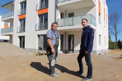 Bis dahin wird unter anderem noch gefliest und gemalert, und die Endmontage der Sanitäranlagen muss erledigt werden. Auch außen gibt es noch so einiges zu tun: Zum Beispiel werden Pkw-Stellplätze geschaffen und Abstellräume gebaut. Thomas Müller ist bei der SWG als Bauingenieur für das Projekt Anne-Frank-Carré verantwortlich.