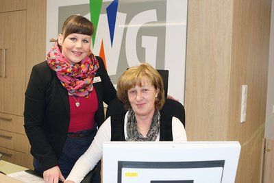 Die beiden Frauen – Lisa Pilkowski ist frisch ausgebildete Immobilienkauffrau und Bärbel Arend mit einem 27-jährigen Erfahrungsschatz im Wohnungswesen – sind zum übergroßen Teil die ersten Ansprechpartnerinnen für SWG-Mitglieder, Geschäftspartner und Wohnungssuchende. Sie regeln den stetig anwachsenden Besucherverkehr und stellen sozusagen die Weichen für die Weiterbearbeit-ung der diversen Wünsche, Fragen und Anliegen. Da kommen zum Beispiel Reparaturaufträge und Mieteinzahlungen ins Haus oder Mietbescheinigungen für die Wohngeldbeantragung müssen ausgestellt werden. Nach dem Einzug der Hauptgeschäftsstelle in die Arsenalstraße vor vier Monaten ist zudem immer mehr „Laufkundschaft” zu verzeichnen.