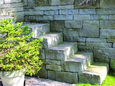 Mauern, welche aus statischen Gründen einen Betonkern benötigen, müssen ebenso auf einem tiefgründigen Fundament aus Beton stehen. Lehmkerne nehmen Wasser auf und sprengen die Mauer bei Frost auseinander. „Beim Mauerbau empfi ehlt es sich, die großen und schweren Steine, mit der schönen Kante in die unterste Steinreihe einzubauen, welche auf einem Schotterfundament mit leichter Einbindung in den Boden liegen. Die Steine werden fest gekeilt und die Zwischenräume mit Splitt, Schotter oder kleineren Steinen verfüllt.