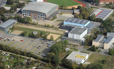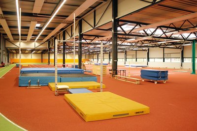 Bis die Athleten endlich ihre neue Halle bekamen, mussten sie genau zwei Jahre warten. Der Bau selbst dauerte inklusive Vorbereitungszeit ein Jahr und kostete 3,5 Millionen Euro (macht 1.000 Euro pro Quadratmeter). In der Laufhalle ziehen sich ringsum zwei grüne 200-Meter-Bahnen, mittendrin auf dem ziegelroten Kunststoffbelag sind nebeneinander sechs 60-Meter-Bahnen markiert, außerdem können die Aktiven hier an einer Weit-, einer Hoch- und einer Stabhochsprunganlage trainieren.