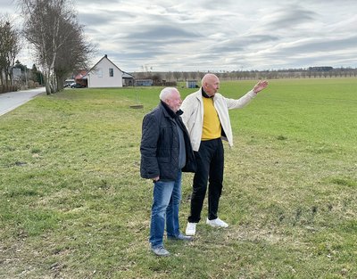 Vom Liegestuhl auf der Terrasse in den Sonnenuntergang schauen. Die Natur genießen, den eigenen Garten. Wenn Hans-Jürgen Radtke, neben Oliver Radtke einer der beiden Projektentwickler, im Brüsewitzer Gartenweg steht und auf die angrenzende freie Fläche vor sich schaut, dann hat er dieses Bild deutlich vor Augen. Dort, mit Blick über die Felder, soll ein neues Eigenheimgebiet mit 37 Bauplätzen entstehen – in einem infrastrukturell gut ausgebauten Dorf im unmittelbaren Umland der Landeshauptstadt.
