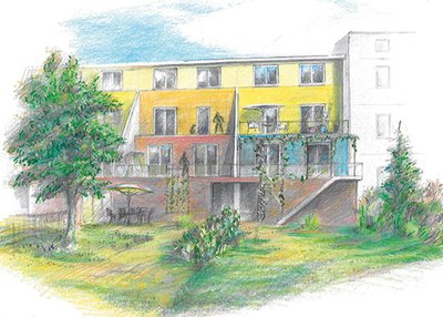 Der vormals etwas vernachlässigte Stadtteil erstrahlt in neuem Glanz. Hier baut die „planconcept Schwerin GmbH“ in einer Baulücke vier Stadthäuser. Die mehrgeschossigen Häuser werden in massiver Bauweise errichtet. In einem Untergeschoss haben zwei Pkw ihre Parkplätze. Hier finden sich außerdem ausreichend Neben- und Abstellflächen und der Zugang zu einem kleinen Garten. Über eine Treppe gelangt man in die erste Wohn-