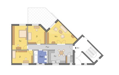 Die Anlage besteht aus drei Drei- Zimmer- und drei Vier-Zimmer-Eigentumswohnungen sowie drei Stadthäusern. Die Wohnungen sind gut ausgestattet, es werden aber auch die Wünsche der künftigen Besitzer berücksichtigt. Die Parterre-Wohnungen können barrierefrei gestaltet werden und verfügen wie das Penthouse in der zweiten Etage über große Terrassen. Die Wohnungen im ersten Obergeschoss haben Balkone. Auf zwei Stadthäusern entstehen Galerieräume mit vorgelagerten Dachterrassen. Alle Terrassen und Balkone sind nach Süden/Südwesten ausgerichtet.