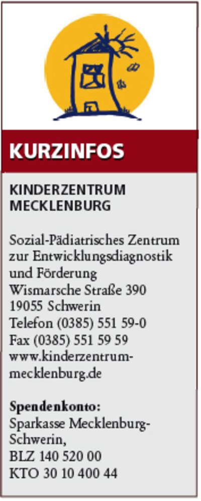Informationen zu diesen und auch weiteren Veranstaltungen sind im Programmheft und auf der Homepage des Kinderzentrums (www.kinderzentrum-mecklenburg.de) zu finden.