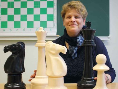 Nach der zehnten Klasse hat Ulrike Stark mit dem Schachspielen aufgehört. „Erst hier an der Schule hatte ich wieder mit Schach zu tun“, sagt die heute 52-Jährige. „Aber wenn ich mit den Kindern zu den Wettkämpfen fahre, dann kommt bei mir das Turnier-Feeling von früher auf. Es ist dann so, als würde ich selbst am Brett sitzen.“