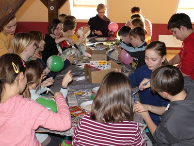 Schloss Dreilützow eine Freizeit für Kinder im Alter von 8 bis 13 Jahren. Unter dem Thema „Papperlapapp“ wird gemeinsam gebastelt, gespielt, gegessen, zusammen Sport gemacht und bei jedem Wetter auch im Freien getobt.