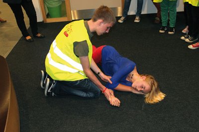 Deutlich besser gewappnet für den Ernstfall fühlen sich jetzt die Schüler und Lehrer der Ecolea-Schule. In Zusammenarbeit mit dem Deutschen Roten Kreuz (DRK) wurden hier zwölf Schüler ein Jahr lang zu Sanitätern ausgebildet. Zum Start ihrer Arbeit erhielten sie vom DRK die offiziellen Zertifikate. Die „Sanis“ werden nun immer dann zur Stelle sein, wenn es kleinere Alltags-Verletzungen zu versorgen gilt. Auch ein Sanitätsraum ist in der Schule eingerichtet. Im Notfall leisten sie Erste Hilfe und rufen den Rettungsdienst herbei. Mit den neu ernannten gibt es inzwischen 150 Schulsanitäter in Schwerin. Zu erkennen sind die hilfsbereiten Schüler auf den Pausenhöfen an ihren leuchtenden Westen.
