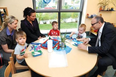 Hoher Besuch zu früher Stunde: Sozialministerin Manuela Schwesig und Ministerpräsident Erwin Sellering waren am 1. August in die Kita „Kirschblüte“ gekommen, um sich zum Start der neuen Elternentlastung vor Ort ein Bild von der Betreuung der ein- bis dreijährigen Landeskinder zu machen.