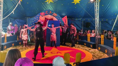 Nach der letzten Zirkusveranstaltung klang der offizielle Teil des Festtages aus, und es folgten die Umbauarbeiten im Zirkuszelt, damit abends die Mitarbeiterparty starten konnte. Hier brachten die tolle Musik und die Einlagen der Artisten und Clowns Stimmung in das Zelt.