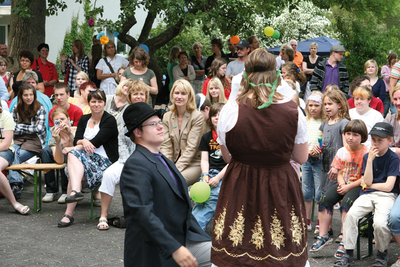 Die Ministerin zeigte sich beeindruckt von der Arbeit der Organisatoren und der Begeisterung und dem Können der Kinder. Auf der Bühne folgte den gesamten Nachmittag über ein Programm nach dem anderen. Erstmals, so die Ministerin, sei sie auch froh darüber, Bodyguards für eine Veranstaltung zu erhalten. Denn in diesem Fall handelte es sich um Schüler der Montessorischule, die ihr das Haus zeigten ...