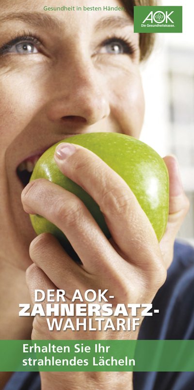 Mit dem AOK-Zahnersatz-Wahltarif genießen Sie komfortablen Extraschutz für einen geringen Monatsbeitrag. Der Wahltarif verringert Ihren eigenen Kostenanteil bei der Anfertigung und Reparatur von Zahnersatz. Je länger Sie dabei bleiben, desto mehr lohnt sich dieser Wahltarif für Sie. Denn die Höhe der möglichen Kostenerstattung steigt Jahr für Jahr. Mit diesem günstigen Tarif können Sie sich auch in Zukunft ein strahlendes Lächeln leisten.