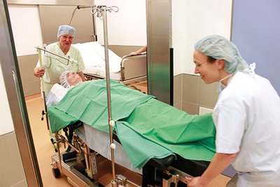 Mit dieser Routine fängt der Tag an – auf das, was danach kommt, muss Annaliese Anders jedoch immer wieder neu reagieren. „Heute haben wir zum Beispiel zwei Hüft-Operationen“, erzählt sie. Einer der Säle ist für die Orthopädie vorgesehen, im anderen finden Eingriffe der Gynäkologie und der Bauchchirurgie statt. „Für jede OP werden vorab vom sogenannten Springer alle benötigten Materialien zusammengestellt und der instrumentierenden OP-Schwester, die sich steril gekleidet im Saal befindet, angereicht.“ Nicht nur das theoretische Wissen ist im OP wichtig, in kaum einem anderen Bereich im Krankenhaus ist die Berufserfahrung von so großer Bedeutung: Die beteiligten Schwestern müssen dem operierenden Arzt stets gedanklich einen Schritt voraus sein. „Wir arbeiten ja nach einem bestimmten OP-Plan“, sagt sie, „und während des Eingriffs ist nur wenig Zeit zum Nachdenken über die nächsten anstehenden OP-Schritte.“