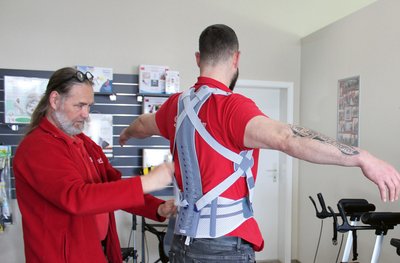 Orthopädietechnikermeister Torsten Lindig wird in der Testwoche zum Beispiel die Orthese vom Typ „Miami LSO Light“ von Össur vorstellen. Sie besteht aus einem Gurt, einem ballenförmigen Druckpolster, der so genannten Pelotte, und einem Seilzugmechanismus und trägt dazu bei, den Lendenwirbelbereich zu stabilisieren. „Viele Menschen empfinden es auch als schmerzlindernd, wenn mittels der Pelotten Druck auf bestimmte Punkte des Rückens ausgeübt wird“, sagt Lindig. Er weiß, dass bei Orthesen gilt: Reden ist Silber, Ausprobieren Gold. Denn oft können sich Betroffene gar nicht vorstellen, welche Linderung ein solches Hilfsmittel bedeuten kann.