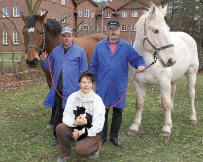 Die Abteilung Reittherapie der Carl-Friedrich-Flemming-Klinik hat drei Mitarbeiter. Sie arbeiten mit zwei Mischblütern, zwei Haflingern, zwei Ponys, einem Schaf, einer Ziege, einem Hund und einer Katze.