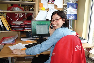 Gemeinsam mit Mitarbeiterin Konstanze Hülse und Gabriele Kartzke greift Stefanie Schmidt nun zum Telefon. Sie nimmt Aufträge an, stellt Touren für die Außendienstmitarbeiter und für Krankenschwester Susanne zusammen. Sie kümmert sich um Reparaturen und erstellt Kostenvoranschläge für die Krankenkasse. Einen kühlen Kopf behält sie auch, wenn es hierbei Probleme gibt oder Kunden nicht sehen, wie viele bürokratische Hürden gemeistert werden müssen. „Die Arbeit ist sehr vielfältig“, stellt Stefanie Schmidt fest. „Mir gefällt dabei am besten der Kundenkontakt. „Ich kann helfen und beraten und kenne mich durch meine lange Arbeit in der Medizintechnik aus. Weiß also, wovon der Kunde spricht.“