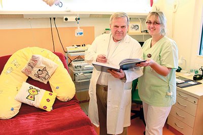 Was allerdings nicht heißen soll, dass es an seiner vorherigen Wirkungsstätte anders gewesen wäre, darauf legt der Mediziner großen Wert. Am Schweriner Klinikum war er bis September tätig, als Oberarzt unter dem von ihm hoch geschätzten Professor Eckhard Petri. „Aber man kann ein großes Haus nicht mit einem kleinen wie hier in Crivitz vergleichen“, stellt Lazar fest. „In einem Umfeld wir diesem fällt es sicherlich leichter, sich persönlich mit den Patienten auseinanderzusetzen.“ Der Kontakt zu den Menschen ist ihm wichtig. Er sei kein „Hochpromovierter“, sondern habe es immer genossen, „an der Basis“ zu arbeiten, sagt er. Das wird einer der Gründe sein, warum sich die Klinikleitung von Mediclin sehr um den erfahrenen Gynäkologen bemühte, als es galt, einen neuen Chefarzt zu finden. Vor seinem Antritt in Crivitz war der 61-Jährige in vielen Kliniken beruflich zu Hause: Von der Studienzeit in Rostock nach Neu Kalliß und ins Schweriner Krankenhaus der 1980er-Jahre, dann nach Perleberg (wo er bis heute wohnt) und Pritzwalk und zuletzt zurück nach Schwerin. Zwei Töchter sind in diesen Jahren herangewachsen und inzwischen selbst Ärztinnen, drei Enkelkinder kamen dazu. Bei den Geburten in der eigenen Familie dabei zu sein, das kam für den begeisterten Geburtsmediziner jedoch nie in Frage. „Nein“, bekräftigt er, „ich kann gut verstehen, warum Väter heute bei der Geburt dabei sein möchten, ich selbst wollte das aber nie.“ Ob er sich anders entschieden hätte, wenn ihm ein Familienzimmer zur Verfügung gestanden hätte? In Crivitz gehört diese Einrichtung heute zum Standard. „Wir überlegen, ein zweites einzurichten“, verrät der Chefarzt. Neuen Entwicklungen steht er offen gegenüber, wenngleich er die Grundversorgung der Patienten als nach wie vor höchstes Gut betrachtet. „Aber auch die Entwicklung hin zu endoskopischen Metoden ist bei uns natürlich ein großes Thema.“ Um im Klinik-Alltag nicht in der Routine „einzurosten“, gibt es für Assistenzärzte und Schwestern eine wöchentliche Online-Fortbildung vor dem großen Monitor im neuen Chefarzt-Zimmer. Daran haben sich nach ein paar Wochen längst alle gewöhnt. Und auch Ralf Lazar glaubt nach seinem ersten Monat, er hätte nie woanders gearbeitet: „Ich hatte vom ersten Tag an das Gefühl, dass ich dazu gehöre.“