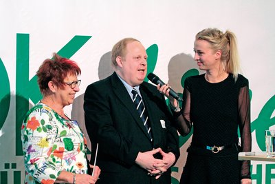 Fast sah es aus, als wollten die Gäste des AOK-Jahresempfangs 2014 ein Ballbad füllen – so viele waren mit grünen Kugeln zu den beiden großen Zylindern unterwegs, die an diesem Abend im AOK-Hauptgebäude am Grünen Tal standen. Jeder Ball hatte den symbolischen Gegenwert von einem Euro, und so stand am Ende des Abends die Summe von 2.500 Euro auf dem Spendenscheck für den DRK-Landesverband.