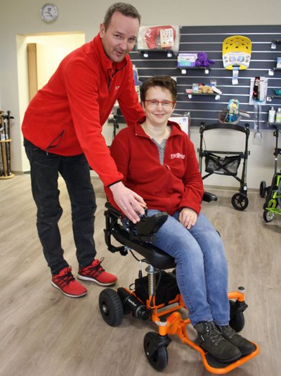 Wer sich den kleinen Alleskönner anschauen und ausprobieren möchte, kann dies jederzeit tun. Im Sanitätshaus Kowsky in Schwerin begrüßt er die Besucher gleich im Foyer.