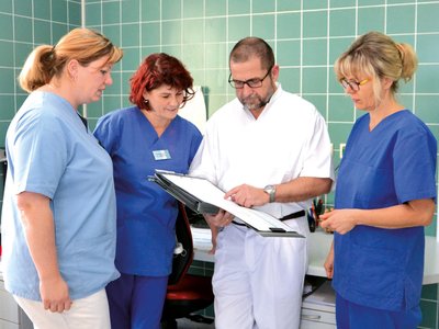 Die insgesamt sieben Ärzte der Internistischen Klinik, inklusive Chefarzt Dr. Sommerfeld, betreuen neben den Patienten auf Station zudem rund um die Uhr die Notfallambulanz mit, von der sehr viele Patienten in den stationären Bereich weitergeleitet werden müssen. „Dass diese eingespielte Truppe zusammen bleibt, war ein wichtiger Grund für mich, den Posten als Chefarzt zu übernehmen“, betont der Chefarzt.