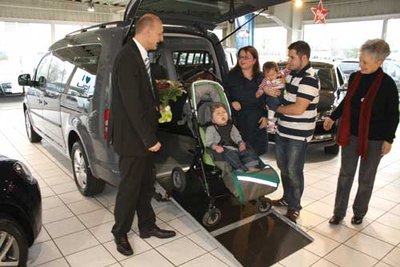 Der vierjährige Felix strahlte trotz körperlicher und geistiger Einschränkungen über das ganze Gesicht, als Mama Sabrina und Papa Sebastian im Autohaus TRAVAG ihr neues Familienmobil in Empfang nahmen. Spendengelder von 17 Stiftungen und letztlich die unbürokratische Unterstützung der „Hilfen für Frauen und Familien“ und des DRK M-V machten den umgebauten VW Caddy möglich. „Die extra kurze Rampe gibt der Familie nun auch im Stadtverkehr die Möglichkeit, ohne Probleme mit dem Rollstuhl für ihren Sohn zu rangieren“, erklärte TRAVAG-Berater Ullrich Kemmler, der die Umbauarbeiten vornehmen ließ. Mit dem ersten großen Ausflug zu Ostern wurde die neue „Familienkutsche“ eingeweiht.