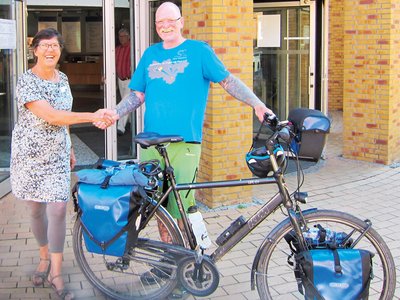 Kürzlich machte der Botschafter des Vereins in Schwerin halt. Unter anderem die Fachdienstleiterin Gesundheit, Renate Kubbutat, begrüßten den Radfahrbegeisterten Oliver Trelenberg im Stadthaus. „Das Projekt ist großartig. Es zeigt einmal mehr, dass jeder etwas tun kann, um anderen Menschen, die schwer erkrankt sind, zu ein wenig Normalität zu verhelfen – gemeinsame Tage mit der Familie, die Seele baumeln lassen, Kraft tanken“, sagt die Ärztin