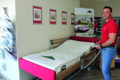 Wer sich für das Bett interessiert: Im Sanitätshaus Kowsky steht ein Modell, an dem Marco Grunenberg und seine Kollegen Interessierten gern die vielfältigen Funktionen demonstrieren.