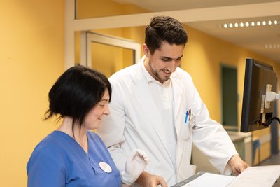 Um hier Klarheit zu schaffen, er- folgt eine umfangreiche Diagnostik. Diese beginnt mit dem „klinischen Blick“, einer ersten äußerlichen Er- fassung des Allgemeinzustands, und reicht über das Messen der Vitalpa- rameter wie Blutdruck, Herzfre- quenz, Atmung, Temperatur und Sauerstoffsättigung bis zu einer all- gemeinen Anamnese. Dabei werden medizinisch relevante Informatio- nen abgefragt: Wie oft, wie stark sind die Schmerzen? Kam das schon einmal vor? In Ruhe oder Bewe- gung? Gibt es nach dem Essen eine Verbesserung oder eine Verschlechterung? Sind bösartige Erkrankun- gen innerhalb der Familie bekannt? Gibt es Vorerkrankungen? Diese und viele weitere Fragen helfen bei der Ursachenforschung. Um Herz- erkrankungen auszuschließen, wird ein EKG geschrieben, eine Labordi- agnostik durchgeführt und gegebe- nenfalls eine Bildgebung wie Sono- graphie, Röntgen oder Computer- tomographie (CT) angefordert. In- nerhalb der stationären Aufnahme wird in der Klinik eine Gastroskopie (Magenspiegelung) und/oder Co- loskopie (Darmspiegelung) empfoh- len, um Blutungen, Entzündungen, Divertikel oder eine Perforation aus- zuschließen. Auch eine körperliche Untersuchung ist unabdingbar: Sie reicht von der Inspektion des Abdo- mens – ist der Bauch gebläht, gibt es Leisten- oder Nabelbrüche, ist Peris- taltik vorhanden – über Abhorchen und Abtasten der Körperoberfläche bis hin zur Kontrolle auf Druck- schmerzen. Rektale und gynäkolo- gische Untersuchungen sind eben- falls ein wichtiger Teil der Diagnostik.