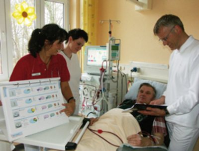 Der Internist und Nephrologe hofft wie sein Team, dass viele Besucher das Informationsangebot nutzen. „Angehörige sind ebenfalls gefragt“, betont Schwester Sylvia. Denn das Verzichten fällt doppelt schwer, wenn andere in falsch verstandener guter Absicht sagen: „Nimm doch noch etwas hiervon“ oder „Trink doch noch einen Schluck“. Das Beste für den Patienten - dieser Vorsatz steht im Dialyseverbund immer im Vordergrund. In den fünf Praxen in Schwerin-Lankow, Schwerin- Weststadt, Ludwigslust, Parchim und Hagenow kümmern sich Ärzte und Schwestern um eine flächendeckende und optimale Versorgung. Die Ernährungsberatung ist dabei nur einer von vielen Bausteinen - wenngleich ein wichtiger.